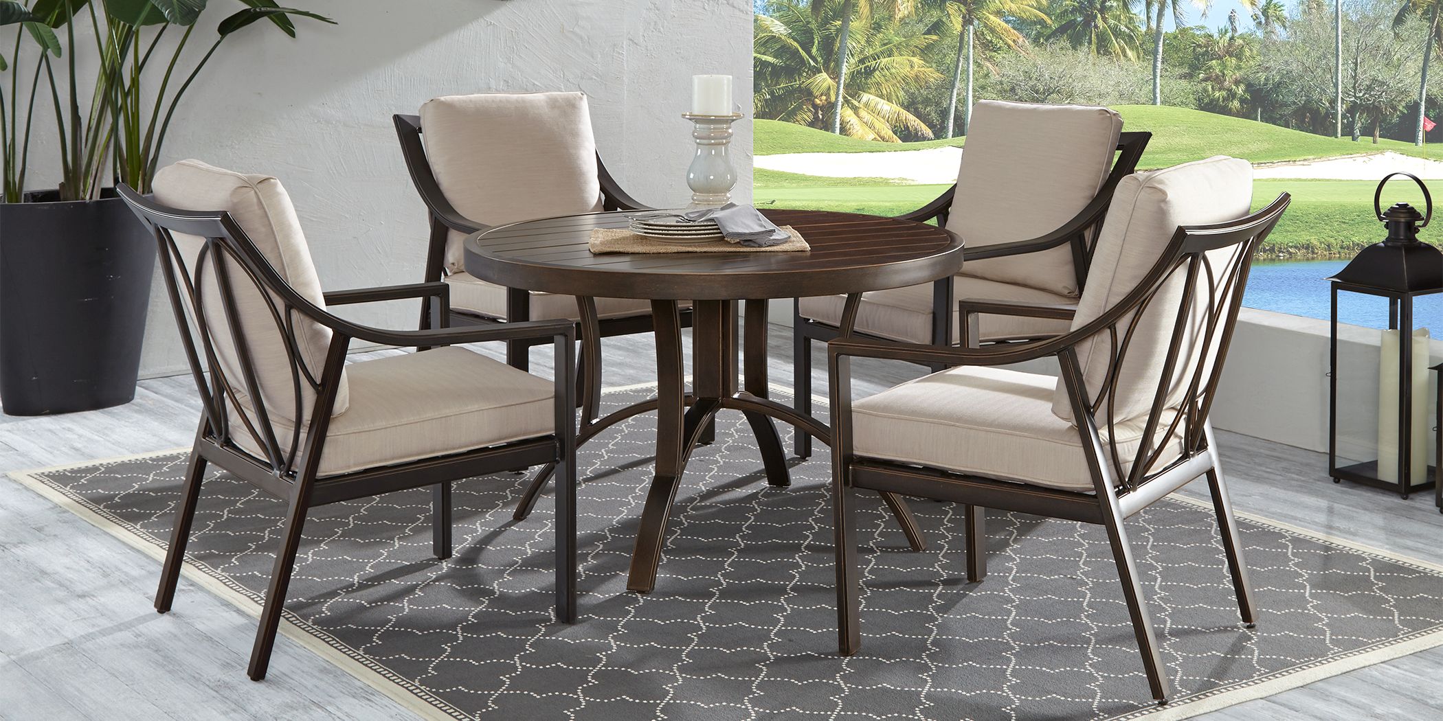 Resin with wicker inlay design. Table side tables are just waiting to water resistant. Create a welcoming dining area and stylish focal point with any one of our outdoor patio tables. Patio dining tables are the perfect places to gather on a warm summer night. You can choose between square or round patio dining tables that will fit comfortably in a smaller space if needed. Patio tables let you take the party outside of your home for parties and casual nights relaxing outdoors. Round patio tables at patiofurniture.com. A square table might be perfect for your patio, while a round dining table could be ideal for someone else. Explore a wide selection of patio tables to complete your backyard living space and save on outdoor furniture today! Discover the joys of eating in the open air with an outdoor dining table. Any patio deck or lanai isn't complete without a patio table or outdoor table, and at everything furniture, our wide selection of patio and outdoor tables are just right for your next outdoor barbecue or picnic. Average rating:0out of5stars, based on0reviews. The center hole can perfectly accommodate your umbrella outside which takes you into a relaxing holiday time.